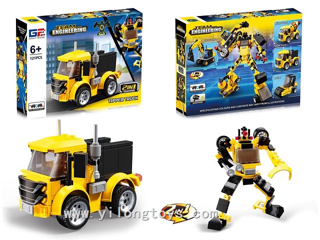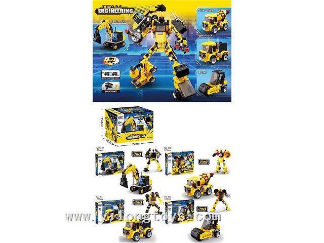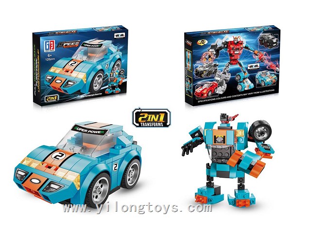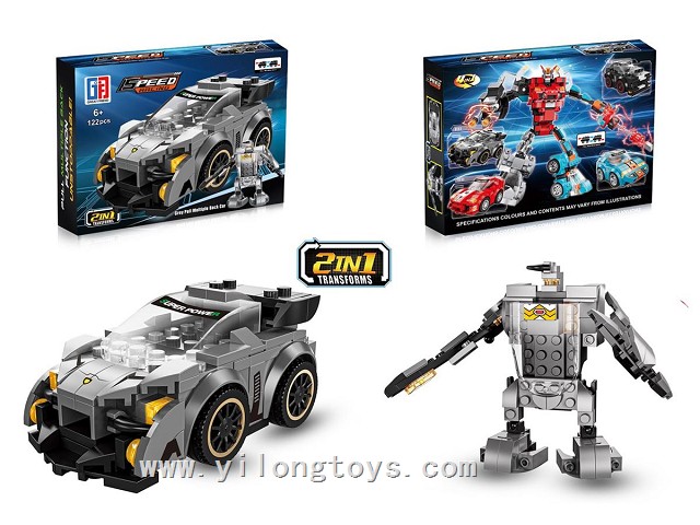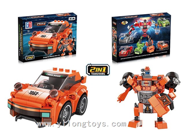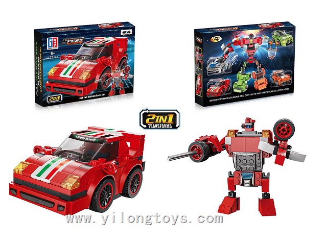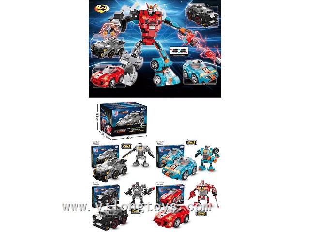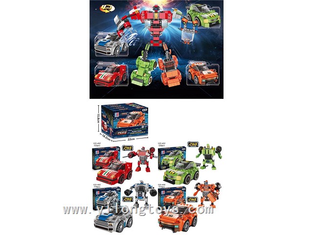 Puzzle City Racing Bricks Double Pull-Back sports car Series 4 in One Transforming ELECTRIC ROBOT (117-123PCS) 4ASSTED