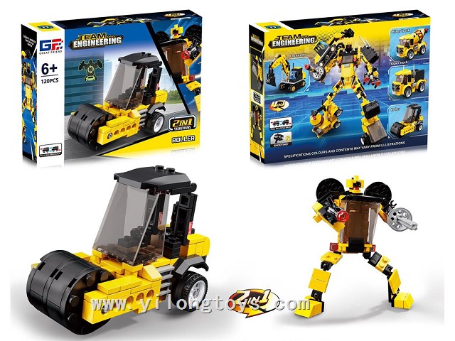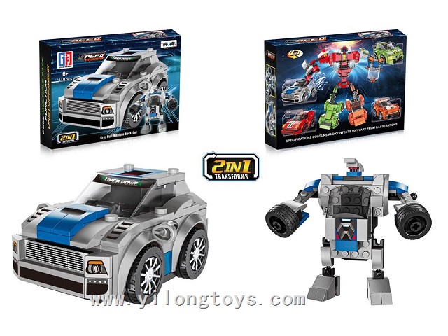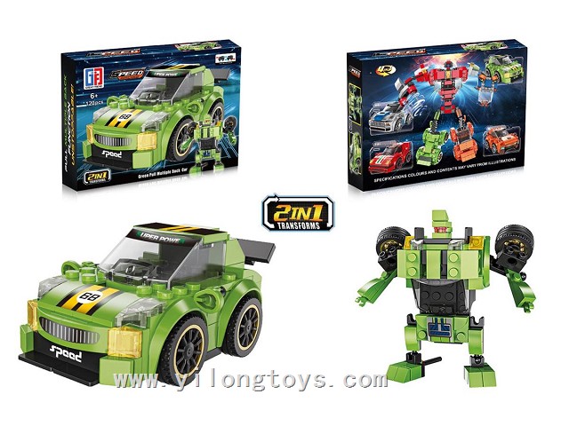 Puzzle City Racing Bricks Double Pull-Back Q Edition sports car Series 4 in 1 Transforming ELECTRIC ROBOT (116-122PCS) 4ASSTED