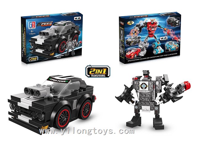 Puzzle City Bricks Dual Pull-Back Q Edition Transforming Dodge Challenger (116PCS) can be mixed with 4 models