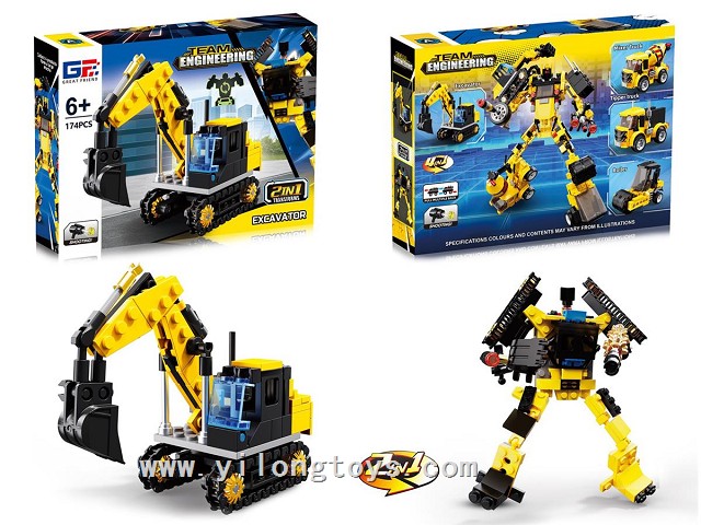 Yizhi City Bricks Ejection Function Q Edition Excavator (174PCS) 4ASSTED
