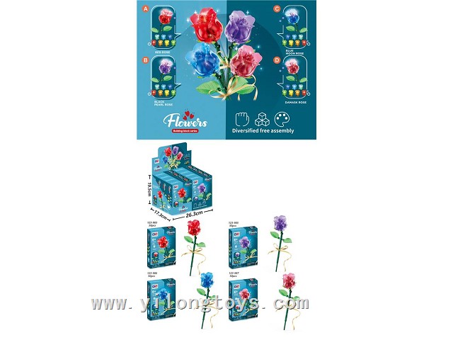 Puzzle floral Bricks red rose (50PCS)(4ASSTED)