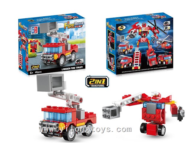 Yizhi city building block deformation fire-fighting back ladder fire truck (46PCS) can be mixed with four models