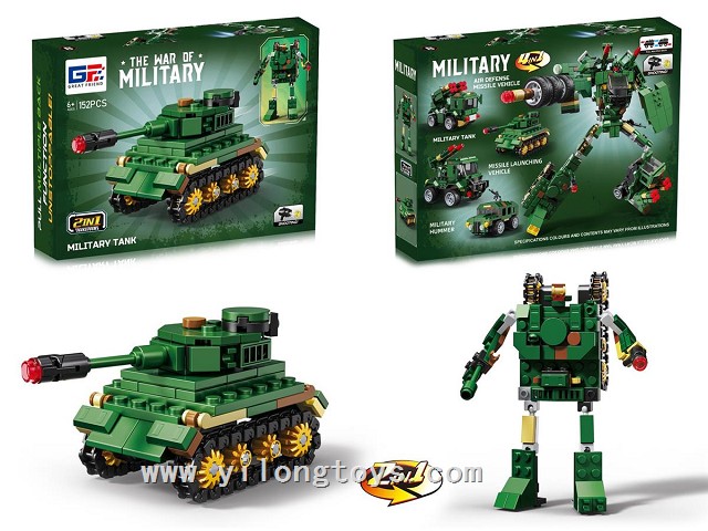 Educational Military Building Blocks with Double Rebound, Q-version Transformable Hummer (121PCS), 4 Mixed Styles