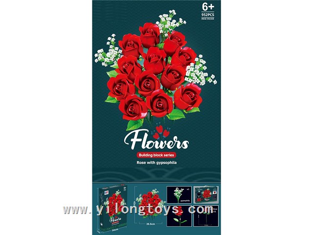 Educational Gardening Building Blocks Set with 12 Roses and 3 Babys Breath (952CS)
