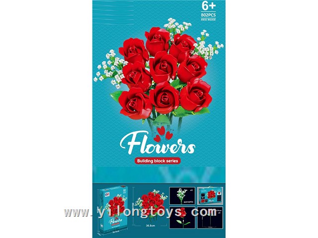 Educational Gardening Building Blocks Set with 9 Roses and 3 Babys Breath (802CS)