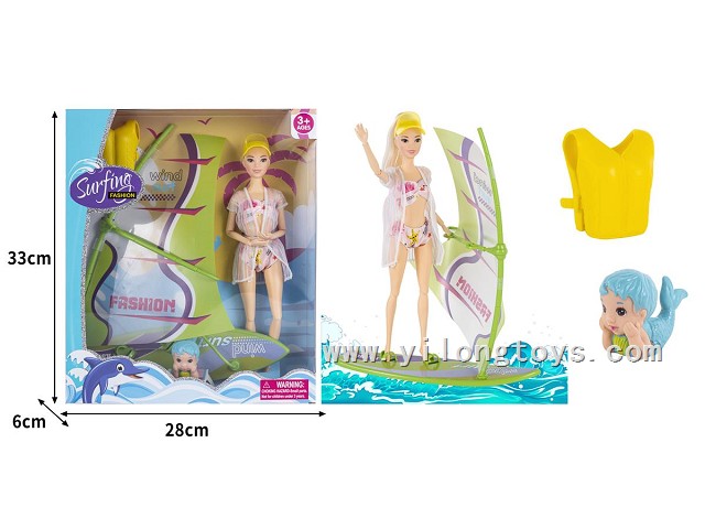 New Summer Surfing Series Double 11.5-Inch Heavy Body 11 Joint Barbie with Sailing Surfboard for Two Purposes