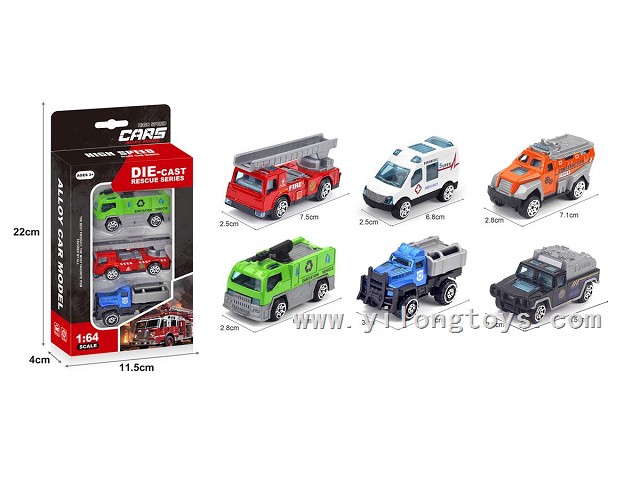 Alloy Sliding Simulation Car 6 Mixed ((3 Pcs/Box)