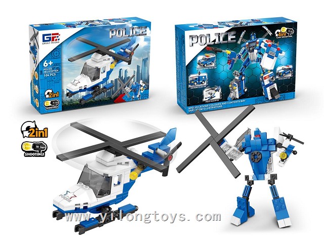Educational Building Blocks City Police Series 2 Transformable Launch Police Helicopter (104PCS) Mixed Set of Four
