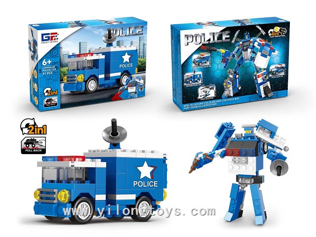Educational Building Blocks City Police Series 2 Transformable Pull-Back Command Police Car (97PCS) Mixed Pack of Four Styles