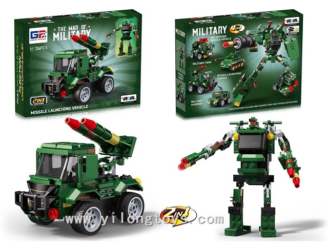 Educational Military Building Blocks with Double Spring-Powered Q-Version Transformable Twin Missile Launcher (126PCS) - 4 Styles Mixed