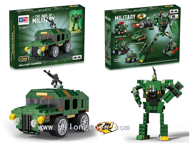Educational Military Building Blocks with Double Rebound, Q-version Transformable Hummer (121PCS), 4 Mixed Styles